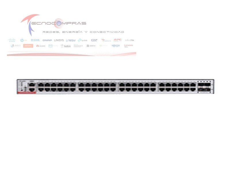 * **Puertos:** 48 puertos Gigabit Ethernet con detección automática de PoE+, 4 puertos SFP+ 10 Gigabit
