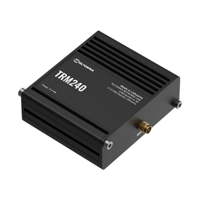 Teltonika TRM240 Modem celular industrial con 4G/LTE (Cat1), 3G, 2G, alimentación MicroUSB (5 VDC), soporte SIM interno, interf