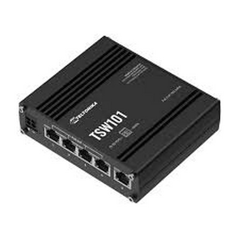 Teltonika TSW101 Switch PoE+ no gestionado con 5 puertos Gigabit Ethernet (4 PoE, 1 uplink), soporte 802.3af/at, presupuesto Po